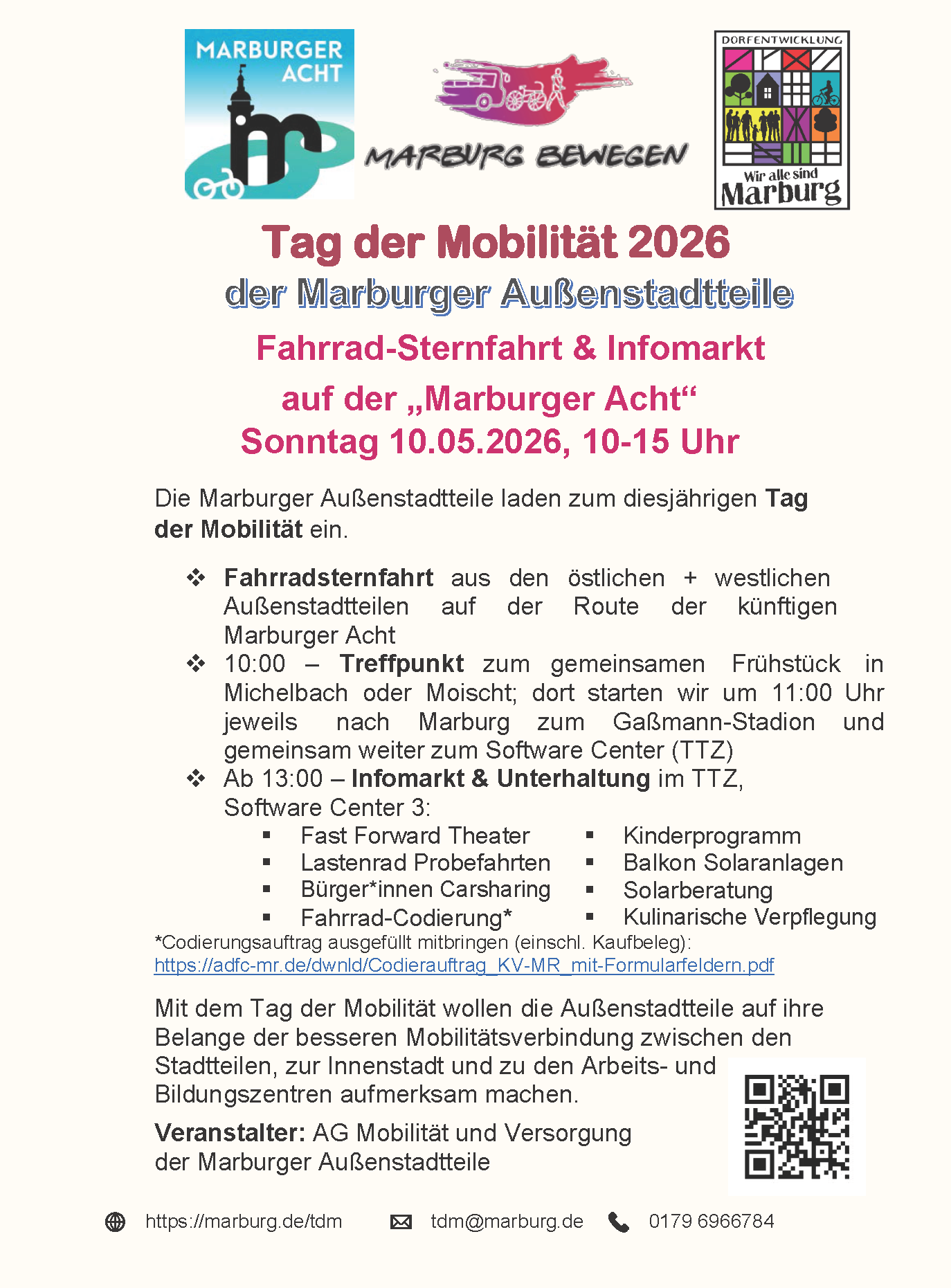 Der Tag der Mobilität 2026 findet mit einer Fahrrad-Sternfahrt & Infomarkt am Sonntag 10.05.2026, 10-15 Uhr statt.